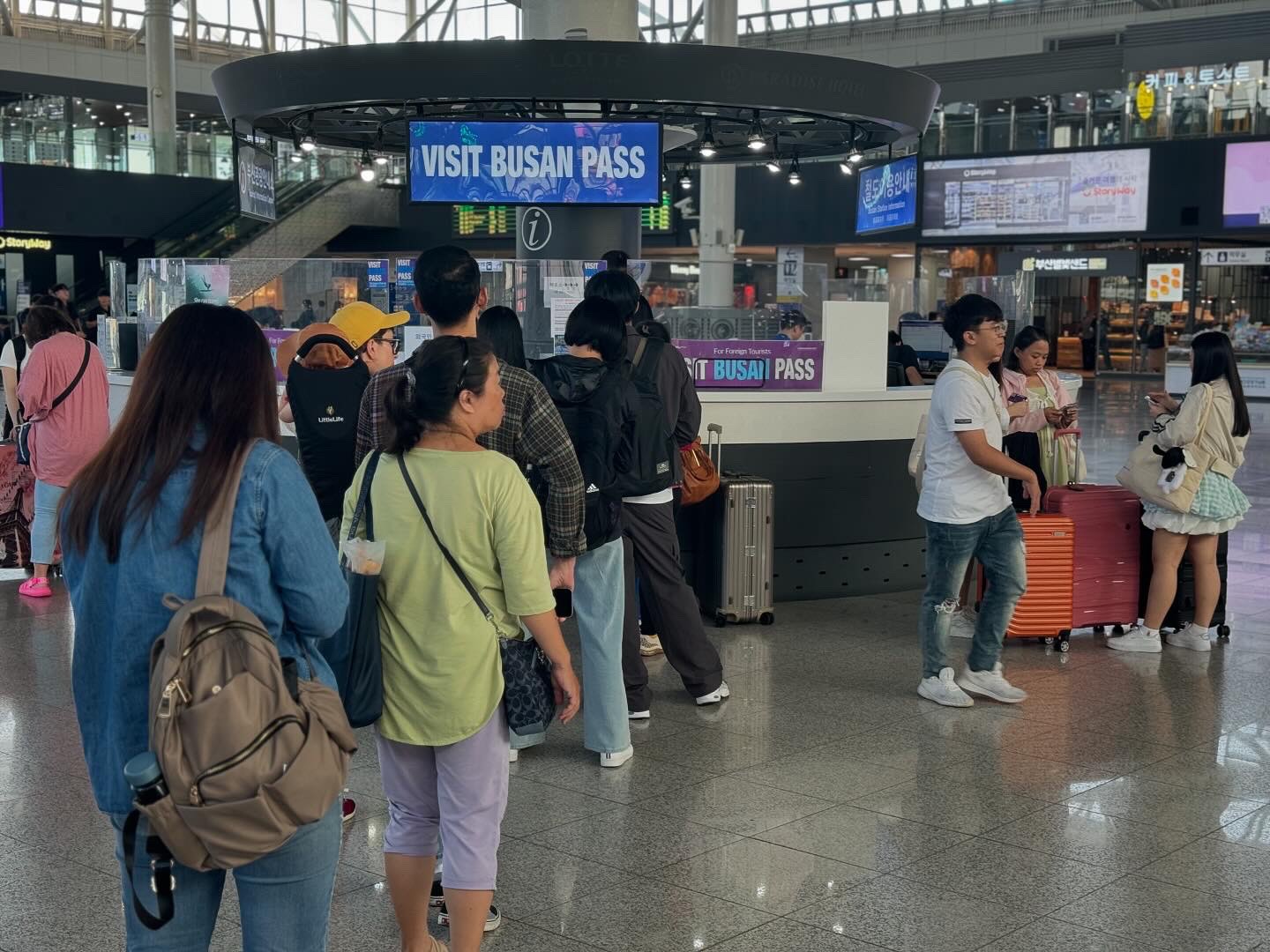 第一次早上9:00 來幫客人領實體卡!沒有想到,這麼多人排隊Visit Busan Pass 釜山通行証,真是很好的推廣
