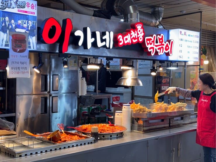 這是影島區一個非常大的市場,台灣翻譯「南港市場」 市場內的美食!也是挑嘴女兒的愛。 每到傍晚有很多在地人,會來帶一份回家