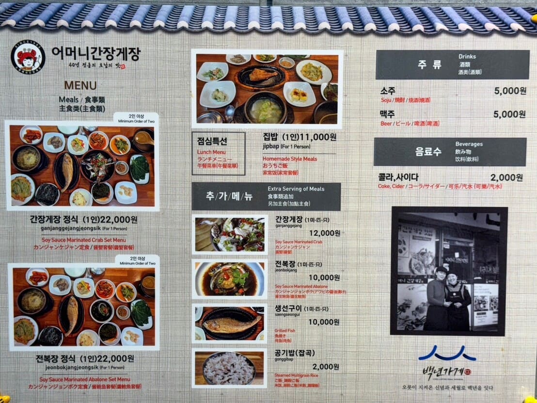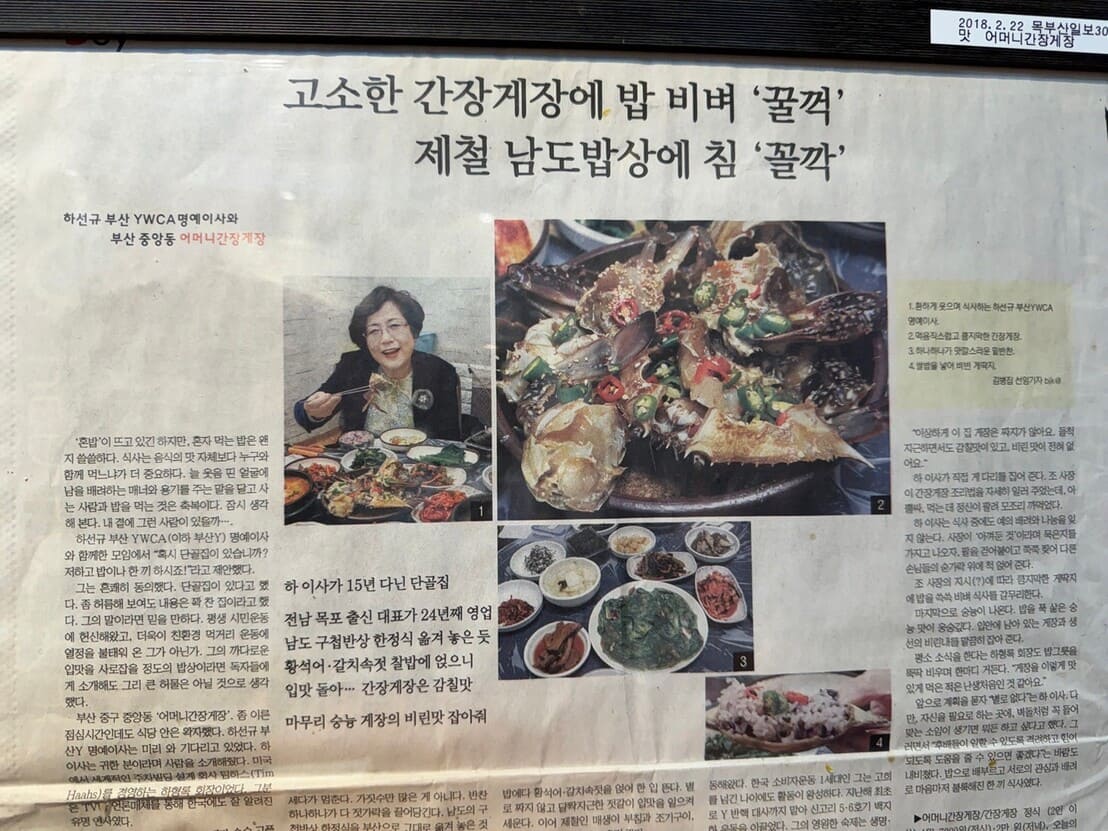 後來朋友來釜山玩,想吃醬蟹。我就在網路上找了一家韓國朋友評論很好的店- 「媽媽醬蟹」。靠近中央站,住南浦洞的朋友也很方便去吃。他們醬蟹套餐真的很超值,二代老闆娘還親自幫我們剪蟹。除了醬蟹他們還有醬鮑魚,但因為我們只想吃螃蟹,所以就點了螃蟹餐。如果同行有人不吃生醃,也可以點好吃的煎魚套餐。