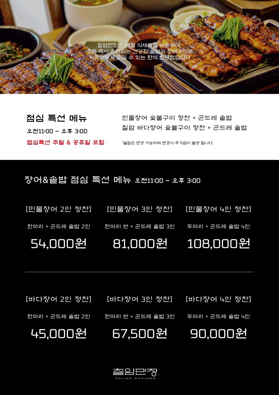 工作人員說英文/中文菜單仍在製作中,不懂海鰻和淡水鰻差異的我,只好求助工作人員的推薦。我們仨人一致選擇骨頭少肉質軟嫩的淡水鰻套餐(烤鰻魚+菜飯 三人81000韓元)