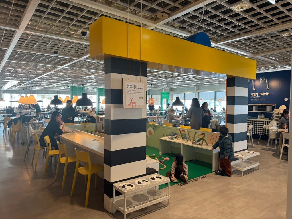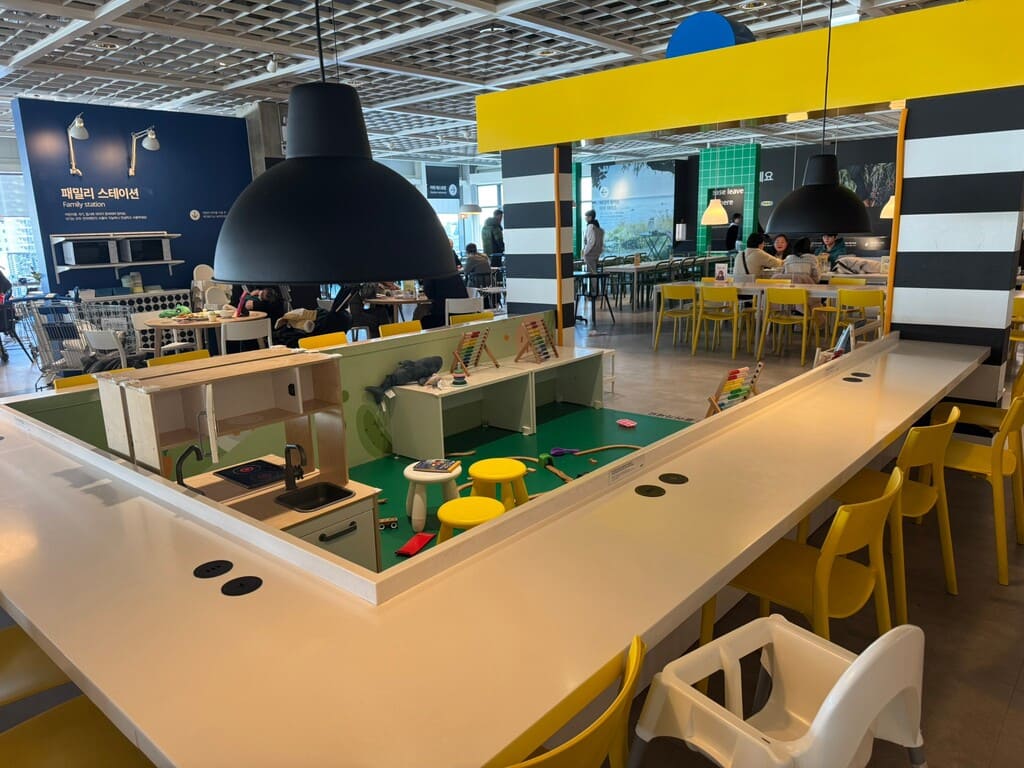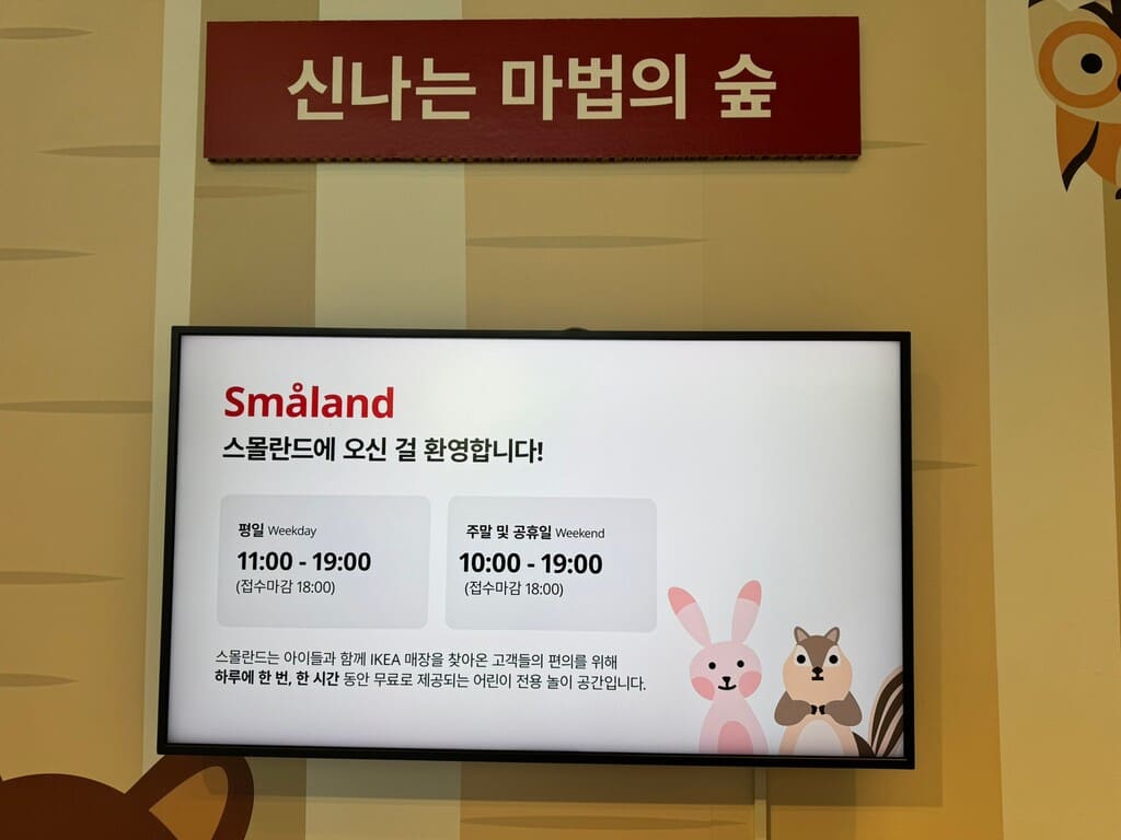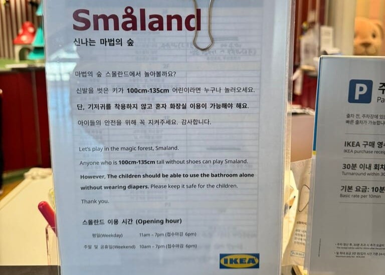 所以,今天我特別去問了東釜山outlet 隔壁的IKEA。這裡有寄童中心(限100-135 cm) 可自行上洗手間的小朋友,免費玩1小時。或者到3樓