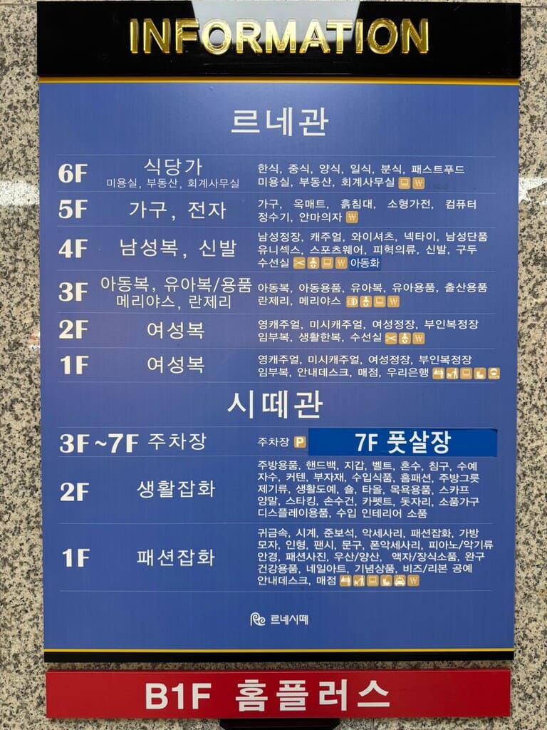 在沙上站隔壁,離 長途客運巴士站不遠的挂法洞 (隔壁還有超大Homeplus) 르네시떼這棟商業大樓,裡面有男女服飾、傢飾用品。其中3樓有嬰幼兒童裝,種類繁多(當然規模沒有像南大門那麼大,但也是可以逛上1-2小時)