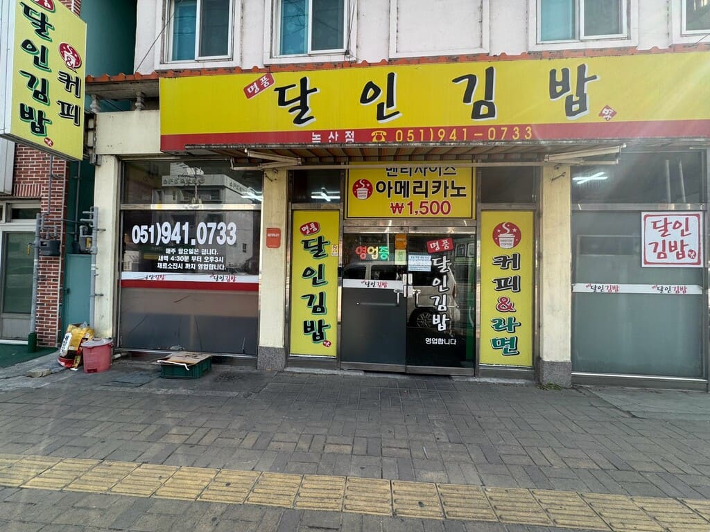 今天要介紹的是早餐「 名品達人紫菜包飯」, 釜山往鎮海方向的公路上有一排紫菜包飯店, 是為了方便長途駕駛還有出外旅遊的人開設。 好吃、價格親民生意很好。 這家店清晨4:30開到下午3:30, 非常適合包車的客人請駕駛大哥 帶大家購買。