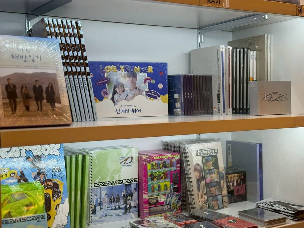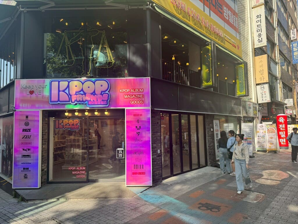 今年,釜山南浦洞BiFF 廣場賣黑糖餅攤,往前11點鐘方向,就可以看到K-Pop朋友南浦店, 這裡販售是合法授權的明星周邊商 品,店內的機器還可以製作自己喜歡的明星儲值卡。