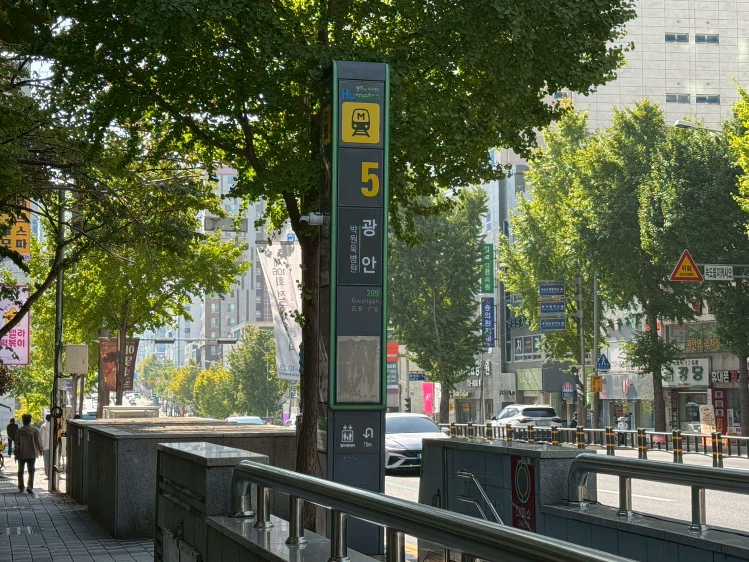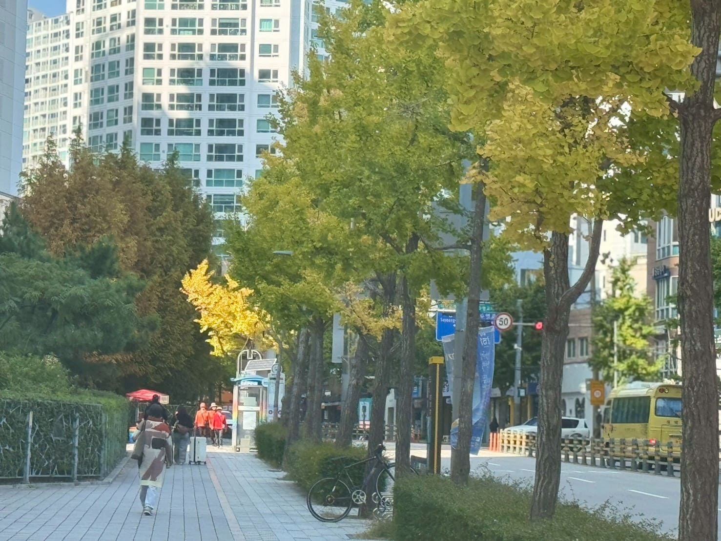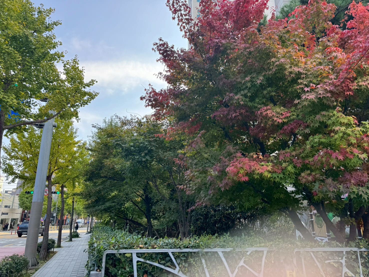 走出廣安里地鐵站5號出口,我原本只是想拍那條通往海邊路上的樹葉。